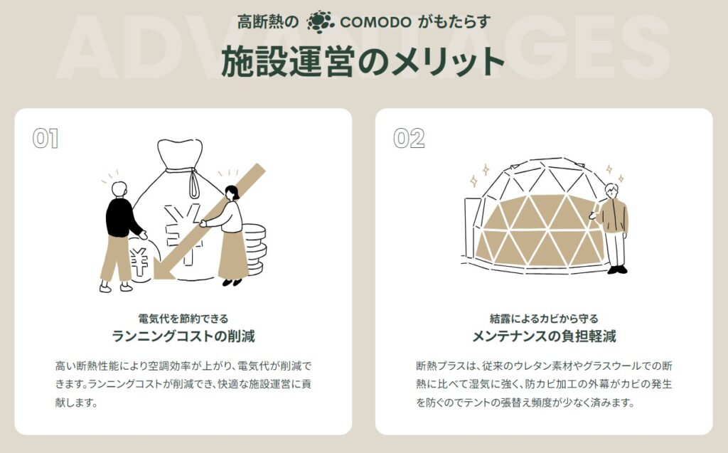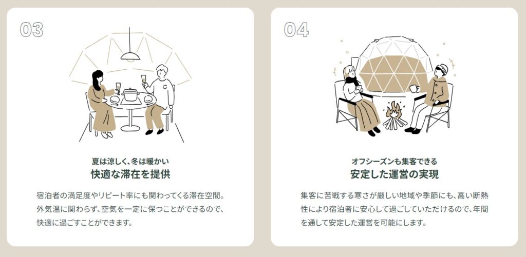 独自開発、アルミと空気の多層構造断熱システムで、ドームを外気温から守ります。